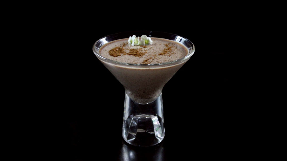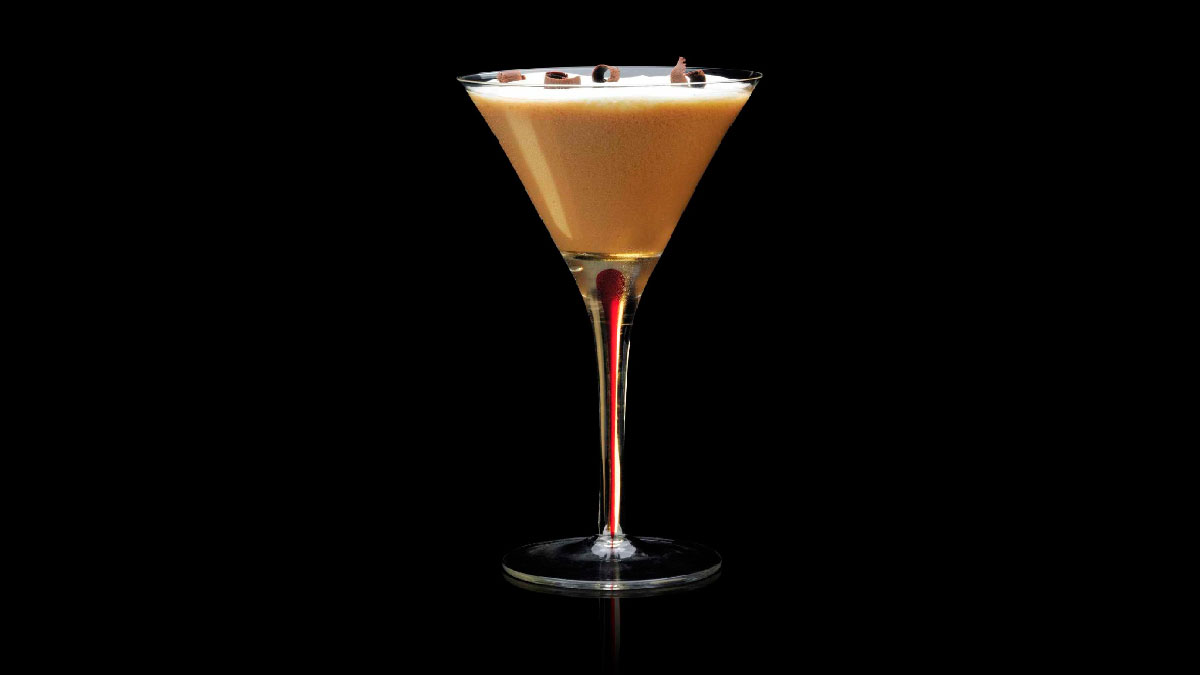 Poner en una coctelera cuatro cubitos de hielo, la crema de chocolate, el licor de café y el helado de vainilla. Lo serviremos en copa de Martini y decoraremos con virutas de chocolate.