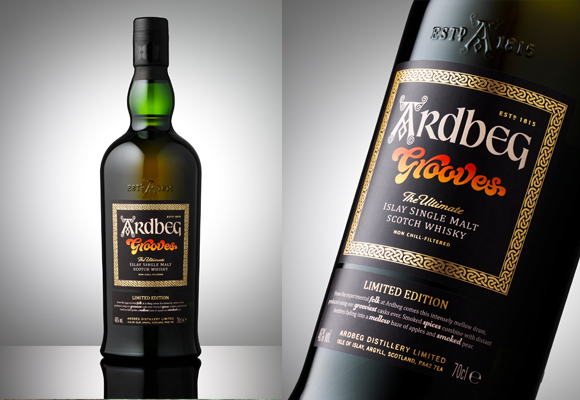 Grooves es un Single Malt inspirado en el estilo de vida alternativo y hippie que existía en Islay durante los años 60. Su etiqueta y packaging nos trasladan a esta época con su simbología ‘flower power’ en alegres tonalidades amarillas y naranjas, pero el contenido de la botella no deja indiferente a nadie. Se trata del primer whisky de la destilería que se cría en barricas de roble que contuvieron previamente vino tinto. Barricas super tostadas, cuyo carbonizado ha provocado surcos en la superficie de la madera. Y de ahí viene su nombre, ya que surco en el idioma anglosajón se dice Groove, palabra que también hace referencia a las músicas que incitan al baile.