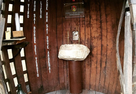 En Italia, en la bodega de Dora Sarchese, hay una fuente de la que brota vino. Un lugar especial con una historia especial. La idea de crear una fuente de vino en Abruzzo nació de la imaginación de Dina y Luigi, dos apasionados caminantes ortonianos que durante su peregrinación a la tumba de Santiago de Compostela tropezaron alegremente con una fuente de vino disponible para los muchos peregrinos que necesitan refresco. Aunque denominarlo refresco, no sé yo…