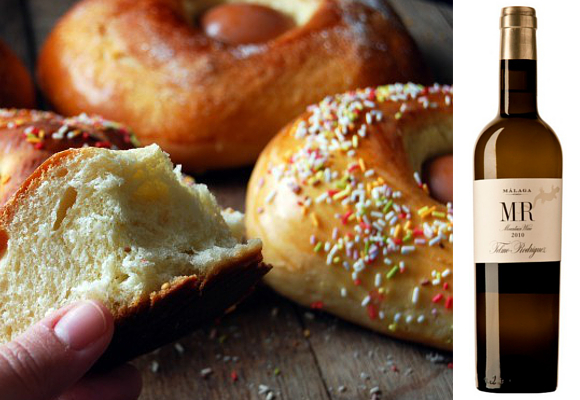 Si nos vamos a la mona tradicional tenemos un bollo (con todos sus matices) con toques de ralladura de naranja o limón, y también anisados. Pues bien, acompañemos esta mona tradicional con un MR de Telmo Rodríguez en Málaga. Este moscatel de Alejandría se caracteriza por su frescura y toques balsámicos, con los matices propios de la variedad, es decir, los cítricos, y hoja de laurel que le confieren singularidad.