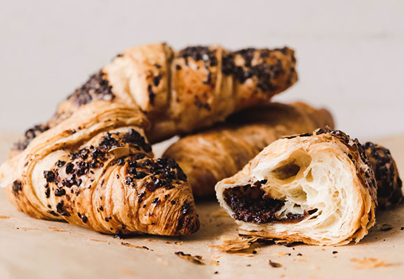 Una de las mezclas más deliciosas son los cruasanes con chocolate, y si son rellenos, mucho mejor. En este último caso, debes prestar atención a la textura del chocolate, ya que este debe tener un aspecto brillante y uniforme