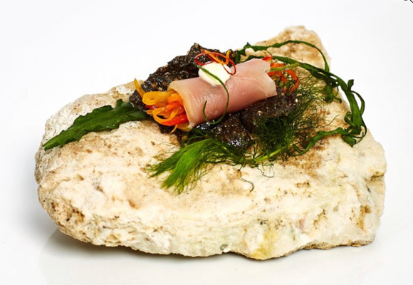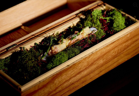 Un delicioso bocado de alheira, un embutido portugués muy apreciado, y yema a baja temperatura. El Accésit a la tapa más vanguardista fue para Rico Torres del restaurante Mixtli de San Antonio, EEUU, por su tapa ‘Rebanada de Vida’. La presentación también fue espectacular. Una navaja sobre musgos venía dentro de una caja cerrada que al abrir reproducía el sonido del mar.