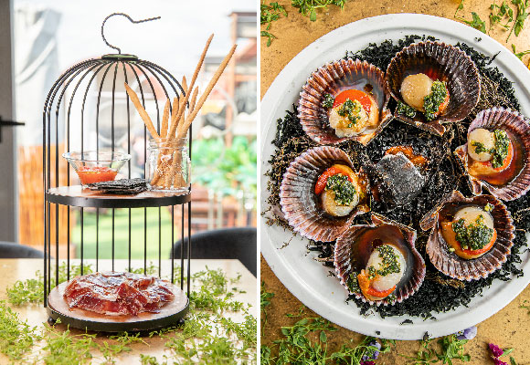 La corvina a la brasa en hoja de banano mezcla los sabores más reconocibles de Latinoamérica y nuestras costas; al tiempo que las gyozas de Heura y korma combinan a la perfección la cultura oriental y la italiana. Croquetas caseras, jamón ibérico, burrata artesana, verduras de temporada o salmón con salsa de ostras… las propuestas son tan diversas como sugerentes.