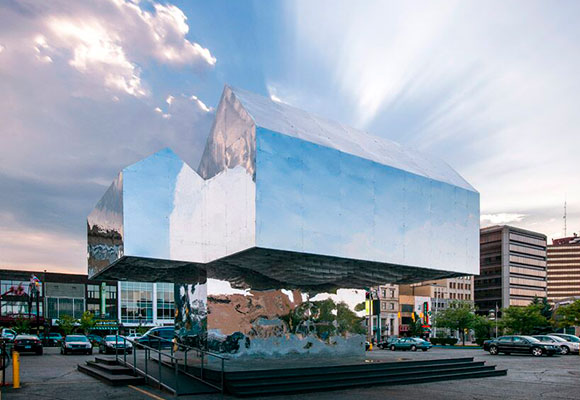 De vuelta de nuevo a los EEUU, concretamente a Michigan, donde la empresa inglesa Two Islands, formada por arquitectos e ingenieros comprometidos medioambiental y culturalmente, creó la Mark´s House, un edificio de dos plantas envuelto en cristales, donde la planta baja se retranquea ostensiblemente, dando la impresión de que la parte alta flota en el aire… Este edificio sirvió como recuerdo de las miles de viviendas que se han demolido en los últimos años en Detroit, debido a ejecuciones hipotecarias y a la disminución de la población de la poderosa capital industrial.