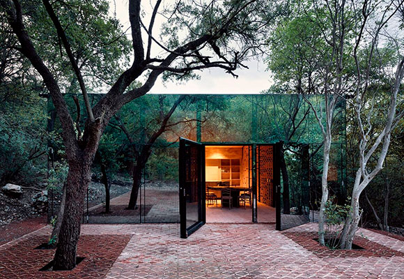 Gracias a los espejos, las casas contribuyen a crear entornos ficticios como grandes bosques
