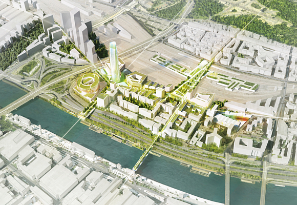 El proyecto se denomina Charenton-Bercy, ideado por la empresa Bouygues Immobilier y en concreto por su filial especializada en eco-barrios, UrbanEra, para un concurso denominado ‘Inventing Greater the Paris Metropolis’. Una iniciativa que pretende reinventar la Metrópolis de París mediante 52 actuaciones urbanísticas de gran calado en las que se busca la integración de la urbe parisina con sus zonas más alejadas, de la forma más sostenible y eficiente posible.