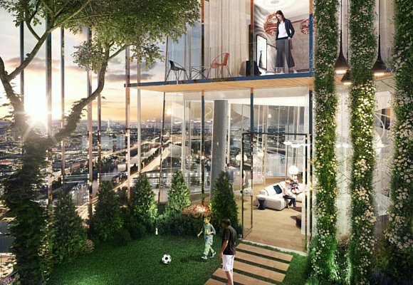 Para que se cumpla esta pretensión deberán acatarse los parámetros del Well Certified, para ello, el diseño incluye la recolección del agua de lluvia, el reciclado de aguas grises, la conversión de residuos en energía, la forma de la torre y su envolvente acristalada, los jardines en cada planta que se conectan con la plaza inferior (un casi bosque) con multitud de tiendas y cafés al aire libre, en total, se crearán unas 3,6 hectáreas de zonas verdes (casi nada). Hasta tal punto llega el afán por “lo verde” que el promotor se ha comprometido a plantar un árbol por vivienda.
