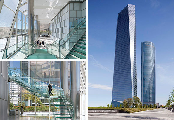 Más al sur, en Madrid, encontramos el edificio más alto de España. Diseñado por Pelli, alcanza los 249 metros de altitud, repartidos en 52 plantas. En total, su superficie construida es de 77.000 metros cuadrados, de los que 57.579 son alquilables. Su singular figura, con varias caras facetadas como si de un diamante tallado se tratara, reconfigura, junto a sus tres compañeras, (las cuatro torres de Madrid) el cielo de la capital. Una verdadera obra de arte llamada Torre de Cristal.