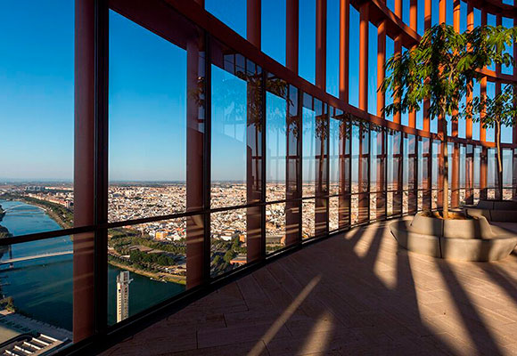 Por supuesto, la cúspide del rascacielos ofrece un restaurante en la planta 36 y un espectacular mirador en la 37. Tiene tres plantas de sótano con capacidad para más de 3.000 coches y, si le tienes “miedo” al calor sevillano, debes saber que el exterior cuenta con un sistema triple de sombrillas verticales y horizontales que impedirán que tu trabajo o tiempo de ocio se vuelva incómodo. Pelli se ha ido, es un hecho, pero sus magníficas torres con sensibilidad medioambiental se quedarán entre nosotros dando ejemplo.