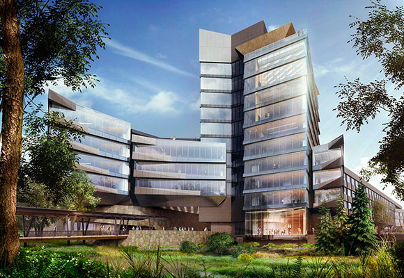 Hoffman Construction ha sido la empresa constructora que se ha encargado de la ejecución de los trabajos, al menos, de los edificios terminados: LA Garage, NYC Garaje, Sebastian Coe y Mike Krzyzewski, ambos diseñados por ZGF Architects. El magnífico edificio de Serena Williams está aún en ejecución. Éste ha sido diseñado por Skylab Architecture, y se esperaba concluyera el pasado 2019. El Williams será el inmueble más grande del campus con 90.000 metros cuadrados, superando los 43.000 del edificio Coe.