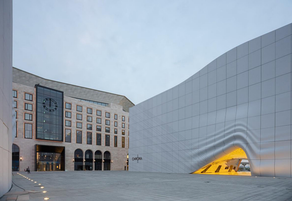 Los retos siempre sacan lo mejor de nosotros, así que los proyectistas diseñaron el espectacular complejo que ahora mismo estás viendo, uno en el que imprimieron en las fachadas las huellas de los edificios circundantes, para deformarlas como si estuvieran saliendo de una máquina impresora. Una hazaña casi escultórica porque además otro de los edificios ha sido bañado con pintura dorada, como si un bote de tinta de oro se hubiera derramado sobre el diseño, en serio… ¡No me digáis que no os emociona!
