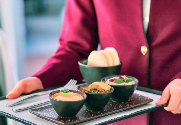 Diseñada con base en la cocina de distintos países, la experiencia gastronómica de Qatar Airways ofrece platos gourmet elaborados con los mejores y más frescos ingredientes. Para los pasajeros de Clase Business y Primera, la aerolínea ofrece una experiencia gastronómica ‘a la carta’ con deliciosas recetas inspiradas en la cultura culinaria de diferentes regiones del mundo y creadas a partir de ingredientes frescos por chefs de renombre internacional.