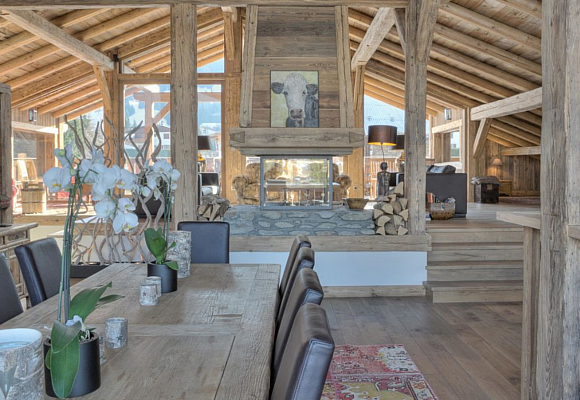 Dispone de 600 metros cuadrados de acogedora y cálida madera con una decoración exquisita para pasar una semana en la montaña por todo lo alto. El espacio no es un problema en este chalet que puede acoger cómodamente hasta a 12 personas, con sus 5 dormitorios y sus 5 cuartos de baño donde reinan los colores cálidos que combinan deliciosamente con la madera oscura de las paredes. El servicio también está cuidado hasta el último detalle: cocinero privado, mayordomo, servicio de habitación, de traslado, de limpieza…