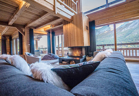 Los ventanales ofrecen unas vistas de la montaña que quitan el hipo y dejan entrar los rayos del sol en el acogedor interior. Nada como terminar la jornada de deporte alpino reposando sobre el sofá con una taza de chocolate caliente delante de la hermosa chimenea.