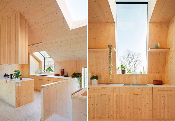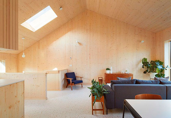 También se ejecutó la envolvente interior con madera laminada cruzada (CLT). El volumen de madera utilizada es capaz de capturar 227 toneladas de carbono. Además, dado que los inmuebles están revestidos en paredes y techos de esta materia, ayuda a dormir con menor contaminación en su hogar.