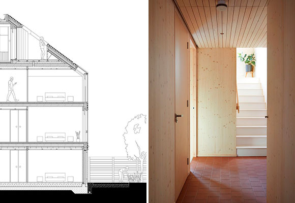 Por ello, los arquitectos idearon dos volúmenes con fachadas continuas que se transforman en cubiertas en sus áticos, al inclinarse en llamativos ángulos, cubriéndolas con el mismo material, ladrillos de arcilla colocados como tejas. ¡Simplemente sublime!