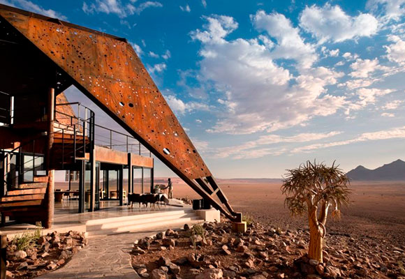 ¿Es posible disfrutar del árido desierto de Namibia desde el lujo más sostenible? Parece que sí, o, al menos, eso nos prometen en este apartado hotel.
