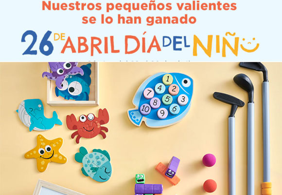 Con motivo del Día del Niño, la compañía realiza estos días un 20% de descuento en los juguetes de la marca El Corte Ingles. Una acción a la que también se han sumado la mayoría de las principales marcas como Barbie, Nancy, Pin y Pon, Hot Wheels, Playmobil… Además, ha puesto en marcha una promoción de regalos con 26 premios de 50 euros en juguetes.