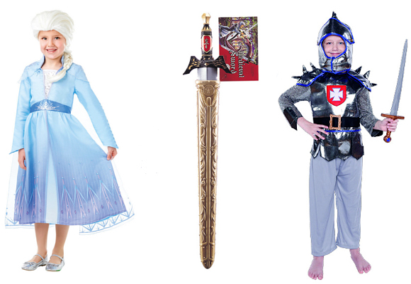 Desde que se estrenó la película de Frozen en 2013 el disfraz de Elsa es uno de los que antes se agotan. La princesa del Reino de Hielo luce una cabellera que también fascina. Por ello el disfraz lleva un elemento esencial: la peluca con una maravillosa trenza. Al igual que en el disfraz del caballero, al margen de modas, en el que la espada es pieza fundamental.