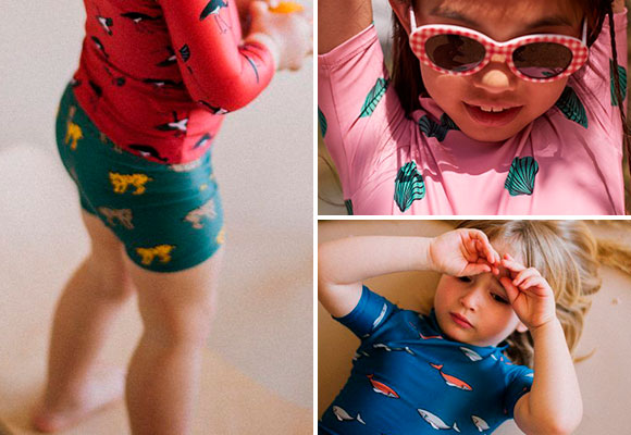 Además de las cremas, existe ropa con la que protegernos del sol. No os perdáis la preciosa colección de baño para niños de Elise et Sardine (Foto: Elise et Sardine)
