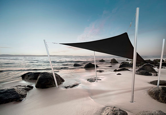 También para la playa puedes conseguir sombrillas rectangulares a modo de pérgola. En este caso KSL Living ha diseñado una tela rectangular que se apoya sobre cuatro postes que podrás clavar sobre la arena de la playa fácilmente, y conseguir un buen espacio donde refugiarte del cálido sol, comer cómodamente y echarte una siesta, sin preocuparte de quemarte la piel o sufrir una insolación.