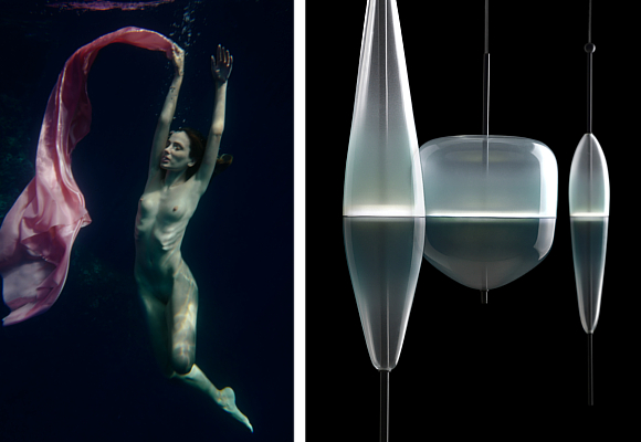La Galería Meritxell Ribé-The Room Studio, Espacio París expone 'Ondas Ingrávidas', la última obra fotográfica del artista Miguel Soler-Roig junto a una selección de lámparas artesanales y de diseño de la exquisita firma Wonderglass.