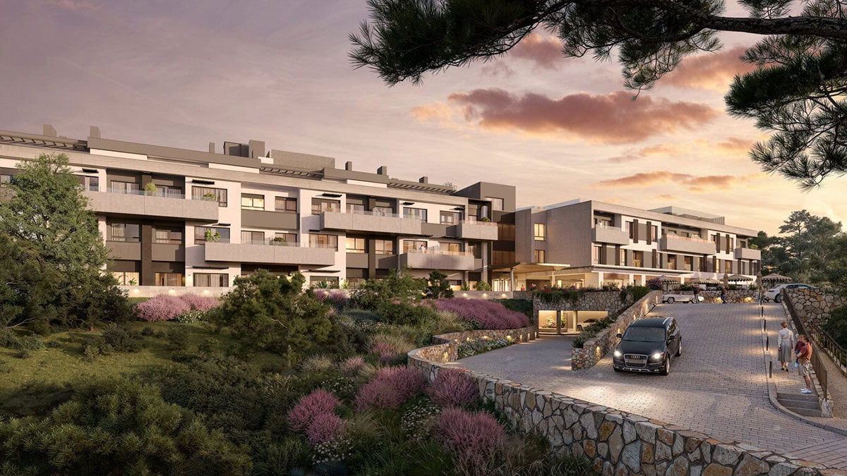 Se ubica en La Moraleja, uno de los barrios más exclusivos de Madrid, y cuenta con 76 apartamentos de 60 a 80 metros cuadrados, para comprar o alquilar. Viviendas privadas de entre uno y tres dormitorios, con baño, cocina y terraza independientes.