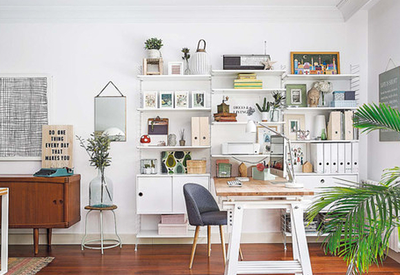 En la zona de trabajo, coloca un estante a mano para mantener el orden