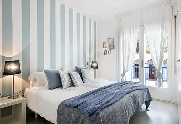 La mejor opción para un piso de alquiler es pintar de blanco, color que va bien con cualquier estilo de muebles, los que tú lleves contigo y los que ya estuvieran en la casa. Luego, da color y textura con papel pintado, por ejemplo, de rayas verticales.