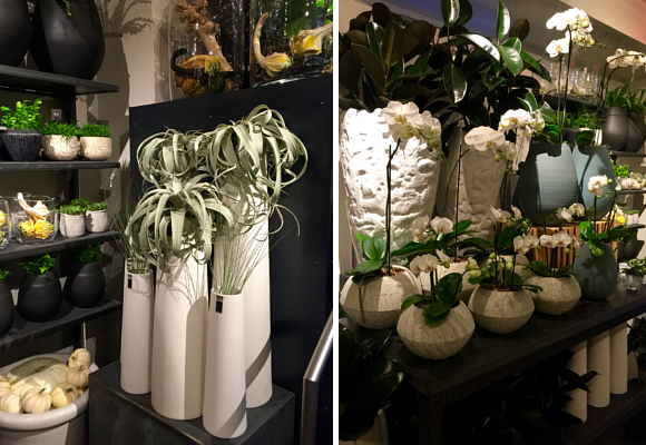 Uno entra en la tienda de Newbury Street y la sensación no es de estar en una jungla ni en un jardín zen, sino en un inbetween chic. Plantas de hojas grandes y lustrosas junto a helechos de apariencia delicada. Mini suculentas sobre piedrecillas y tillandsias que parecen arañas descolgándose. Enormes vasijas con rosas, hortensias y hellebores frente a vasos con ramos para poner en el baño.