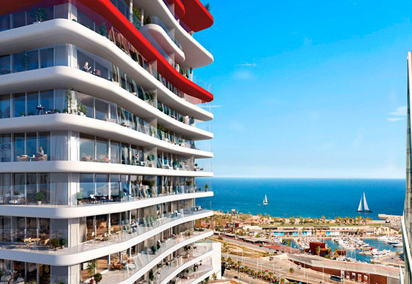 La diseñadora Odile Decq ha creado esta nueva torre residencial apoyándose en la reforma de un edificio obsoleto. Sus 28 plantas redibujan el skyline barcelonés, ubicado en el número 1 de la Plaça Llevant. Como buen residencial de lujo, posee una piscina cubierta, un centro wellness, gimnasio, sala multimedia, una Sky Terrace, un restaurante y, por supuesto, una piscina en la cubierta. En total, 89 apartamentos de uno a cuatro dormitorios, incluyendo dúplex y áticos, y sin contar con un espectacular penthouse con vistas de 360 grados por valor de nueve millones de euros.