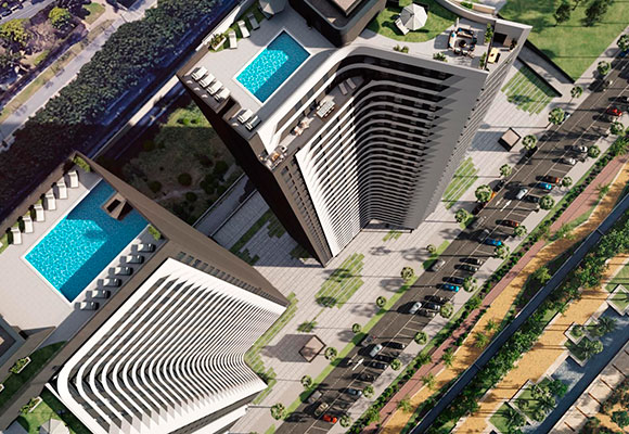 Los arquitectos, Morph Estudio nos cuentan que su proyecto surge de un detallado estudio de la mejor vivienda y hotel posibles, evitando estancias oscuras o distribuciones difíciles. De este estudio nacen las dos torres en forma de Y, la sur, y T, la norte, abriendo al máximo sus vistas. Dentro encontramos viviendas de entre uno y cuatro dormitorios, pensados para dar cabida a la clase media alta de la ciudad.