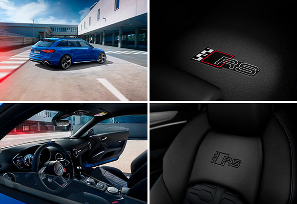 El interior también está inspirado en el legendario RS 2 Avant, dominado por el color negro, con detalles en Alcántara con tono azul cobalto en los ribetes de las alfombrillas, y la marca de las 12 en punto del volante. Los asientos súper deportivos, con una tapicería con patrón en panal de abeja en los TT RS, RS 4 y RS 5, combinan piel Nappa fina en los laterales con alcántara en los paneles centrales.