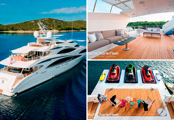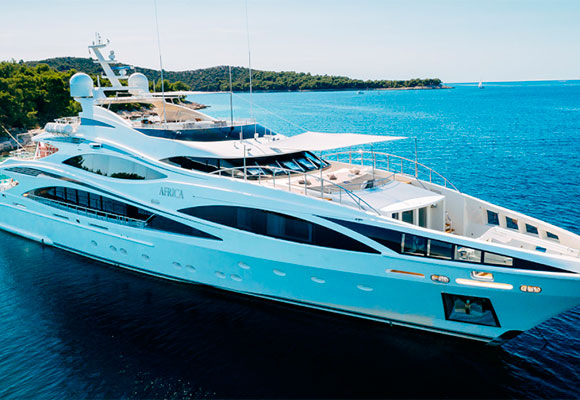 Aunque la capacidad del África I es de 12 personas, lo cierto es que en cubierta está permitido organizar fiestas con el doble de invitados. Además, el yate cuenta un espacio destinado a la tripulación que puede albergar hasta 9 personas.