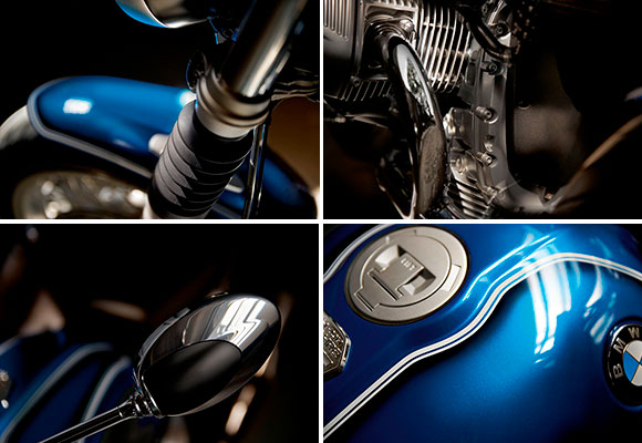 Los retrovisores y escapes cromados son un regreso al modelo histórico, así como el asiento con doble contorno al estilo /5, con su tapizado cruzado, correas de soporte y costuras blancas, y los fuelles en la horquilla telescópica. Los acabados en Aluminio Plata del motor, caja de cambios, barras de horquilla, bujes y radios, también evocan a los modelos /5 legendarios; como también lo hacen los componentes acabados en negro, como el chasis y la carcasa del cardán.