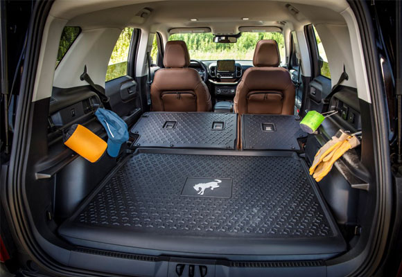 El diseño human-centric llevó a incorporar características especiales de Bronco Sport. Como los faros LED exclusivos del portón, porque en la naturaleza no hay farolas. Correas MOLLE para llevar equipo adicional, bolsillos con cremallera en el respaldo del asiento para almacenaje adicional e incluso un dispositivo abrebotellas en el área de carga.