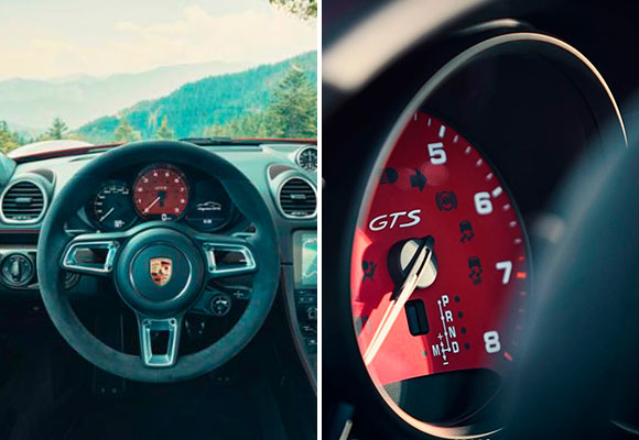 El pack Sport Chrono que llevan como equipamiento estándar y que incorpora la aplicación Porsche Track Precision evolucionada, también enfatiza el carácter atlético de estos deportivos con motor central. Otros de los puntos destacados de los modelos GTS son los elementos de diseño en negro de contraste y un interior en Alcántara®.