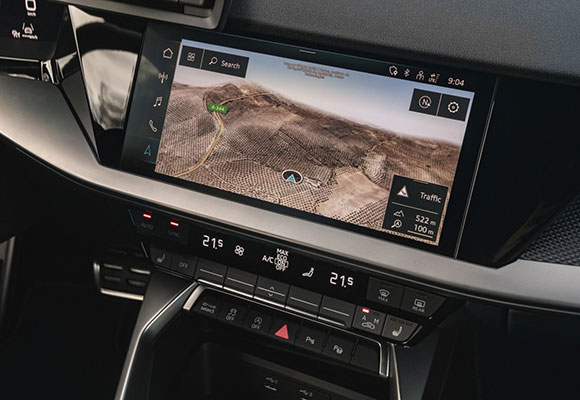 La radio digital DAB+ forma parte del equipamiento de serie y la radio online o híbrida está disponible como opción. El sistema de navegación ofrece predicciones sobre el estado del tráfico, imágenes de satélite en alta resolución de Google Earth y modelos 3D de muchas ciudades europeas. También los sistemas Audi Connect enriquecen los puntos de interés con fotos, horarios y comentarios de los usuarios. Además, se incluyen los servicios Car-to-X, que ayudan a encontrar lugares de aparcamiento gratuitos o permiten la comunicación con los semáforos para aprovechar las fases en verde.