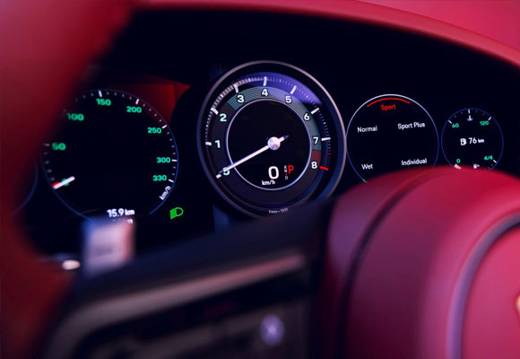 El cuentarrevoluciones y el cronómetro, con un aspecto clásico e iluminación en verde, subrayan la emotiva naturaleza del concepto. Del mismo modo que la tapicería de microfibra perforada del techo y los numerosos detalles de acabado en cuero Exclusive Manufaktur. Una placa metálica en el salpicadero muestra el número correspondiente a la unidad concreta de la edición limitada.