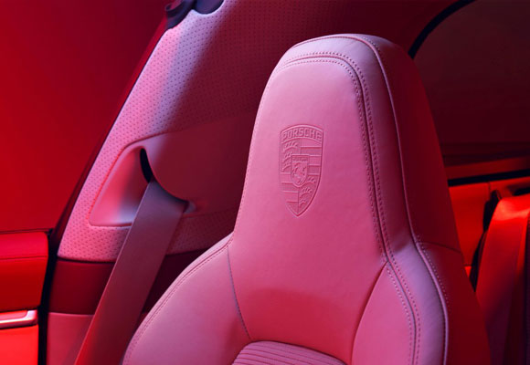 El interior también rinde homenaje al pasado. La exclusiva piel bitono del habitáculo combina el cuero rojo Burdeos con el cuero Olea Club en Beige Atacama o el cuero negro con el cuero Olea Club en Beige Atacama. El uso de la pana en los asientos y las molduras de las puertas suponen el retorno a un material utilizado ya en el Porsche 356. Con ello se revive el espíritu y la moda de los cincuenta.