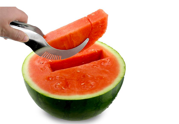 ¿Tienes miedo de que un día se rebane los dedos con ese cuchillo gigante que usa para las piezas grandes como la sandía? Este innovador utensilio combina un mini rebanador y unas pinzas para cortar y servir la sandía. Perfecto para preparar el postre y la merienda ahora que llega la temporada de fruta fresca y días de calor.