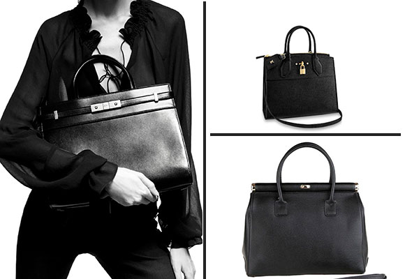 A la izquierda el bolso Manhattan de Yves Saint Laurent, arriba el bolso City Steamer de Louis Vuitton y abajo la versión de Westwing (Fotos: Ysl.com, Louisvuitton. com y Westwing.es)
