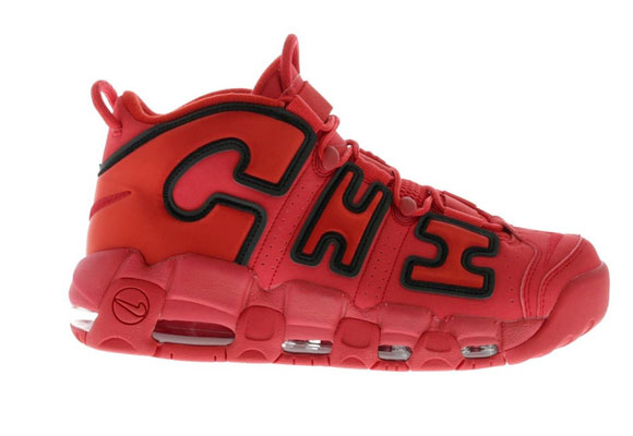 En esta ocasión, la Air More Uptempo “Chicago” se viste por completo de un tono rojo intenso en alusión al uniforme de los Bulls, el equipo de baloncesto de la ciudad. A su vez decora con negro el contorno de las letras que componen la palabra “Chi”. Al igual que el anterior modelo, vio su salida el 20 de diciembre de 2017 por 170€, aunque, esta zapatilla tiene un precio de reventa más alto, que alcanza los 310€ según la talla.