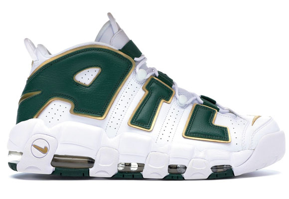 En primer lugar su color principal es el blanco combinado con el verde oscuro de las letras y el remate dorado del contorno de las mismas y el swoosh. En segundo lugar, hay un dibujo de un melocotón en el talón izquierdo, inspirado en el mote que recibe el estado de Georgia, donde se localiza Atlanta. Y por último, en el otro talón aparece el número 404, que representa el prefijo telefónico del área de la ciudad. Como los anteriores, llegó a las tiendas a finales de 2017 costando 170€, precio bastante bajo comparándolo con los 400€ que vale actualmente en StockX.com.