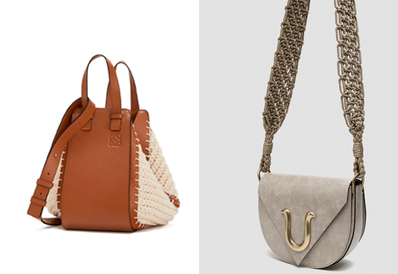 El crochet será un material que se usará a lo largo de toda la temporada y más especialmente durante la época estival. Destacan los bolsos trenzados, tejidos a mano, tanto en hilos finos, así como con mayor grosor, junto con la utilización de apliques florales. Asimismo, se confeccionan con macramé, yute o cuerda. Y uno de sus mayores beneficios, además de la belleza estética, reside en la posibilidad de incrementar su tamaño y transformarse en un bolso compacto.