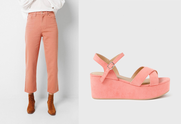 Los pantalones de tiro alto, rectos de pierna y bajo tobillero están más de moda que nunca. Lucirlos en uno de los colores más de moda de las últimas temporadas puede resultar de lo más cool si además los combinamos con unas sandalias del mismo tono. Hablamos del color coral, primaveral donde los haya y escogido Pantone del año en 2019 y que no ha dejado de estar de moda desde entonces.