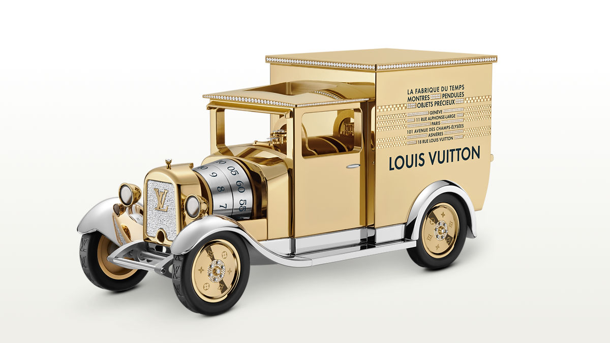 Louis Vuitton vuelve sorprender con una edición exclusiva de su nuevo reloj de mesa. Se trata de una versión de oro y diamantes de la Louis Vuitton Camionnette. Es una reinterpretación de su histórica furgoneta de reparto, limitada a solo 15 piezas, que forma parte de la colección Objects of Time.
