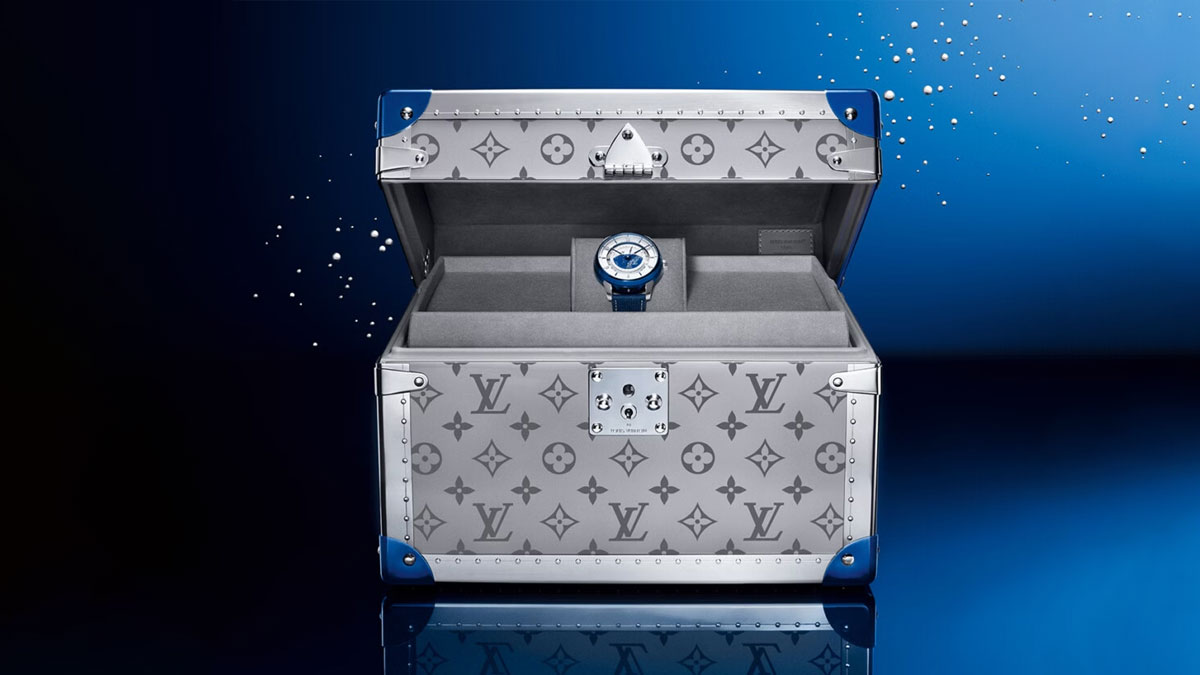 Se trata de un reloj de pulsera de 45mm, alojado en una caja de titanio pulido. El bisel presenta las doce letras Louis Vuitton grabadas con chorro de arena en la superficie y pulidas individualmente. La corona, acabada a mano, luce el icónico Monogram de Louis Vuitton.