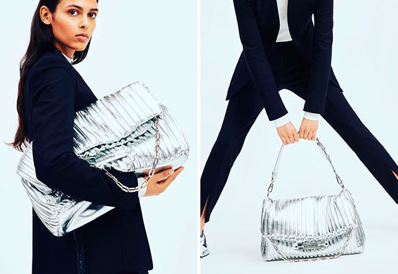 Este nuevo bolso acolchado está disponible en tres colores, negro, plateado y azul metalizado. Está confeccionado en piel con la técnica del plisado, un acabado que le da a la silueta un toque muy moderno y atractivo. Sin embargo, lo más cómodo del K-Kushion plegable es su gran tamaño. Esto lo convierte en el bolso perfecto para llevar todo lo que necesitamos en nuestro día a día o para salir de viaje. Además, lo podemos usar como almohada, rememorando al gran Karl Lagerfeld.