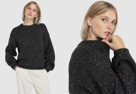 2- Un jersey con lentejuelas. Pero si lo tuyo no son los vestidos pero te encantan los brillos y las tendencias para fiesta de esta temporada, atrévete igualmente con las lentejuelas pero en formato jersey. Sin duda es una estupenda alternativa para lucir un look de fiesta sin parecer disfrazada, sobre todo si sueles vestir de sport.